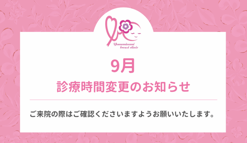 9月の診療時間変更のお知らせ